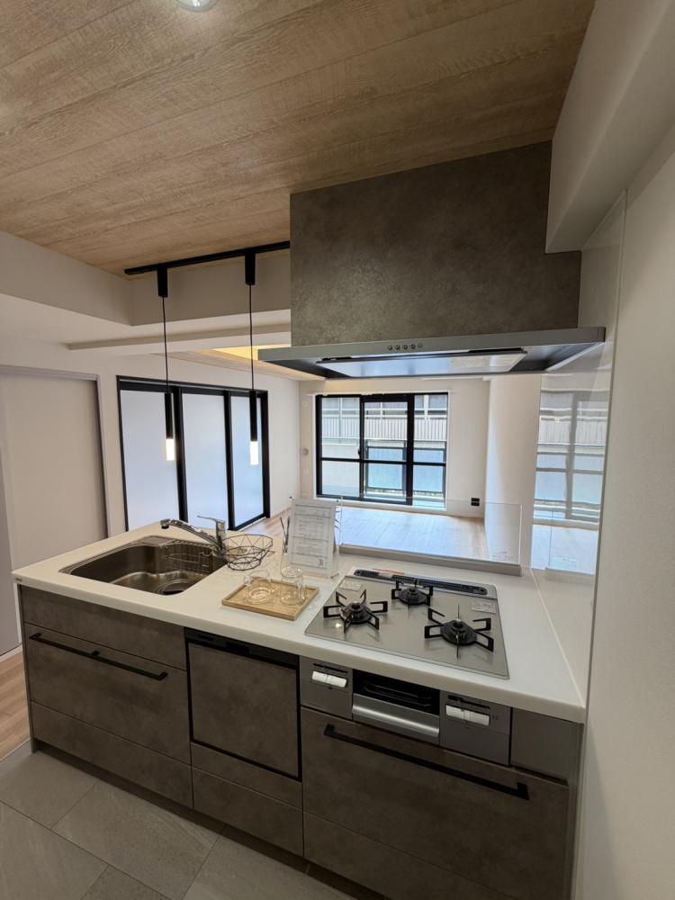 人気の対面キッチン(システムキッチン、食洗器付き)です。