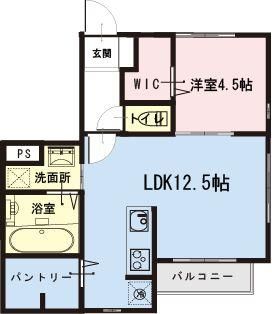 | 築年月 | 2018年8月 | 間取り | 1LDK( LDK12.5畳/洋室4.5畳 ) | 専有面積 | 42.64m2 |